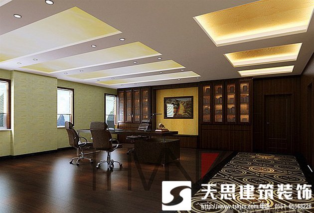 有的老板為了節約地方沒設自己辦公室,有的老板為了顯氣派,把自己的辦公室弄的特別大,這兩種情況都是不合理的。總經理辦公室就像龍頭,過大或過小都會造成公司整體運轉不靈活, 面對各種競爭不能隨機應變,從而阻礙發展。那么多大的面積比較合適呢,一般總經理的辦公室占整體面積的四分之一左右為宜,這里說的不包括工廠。
